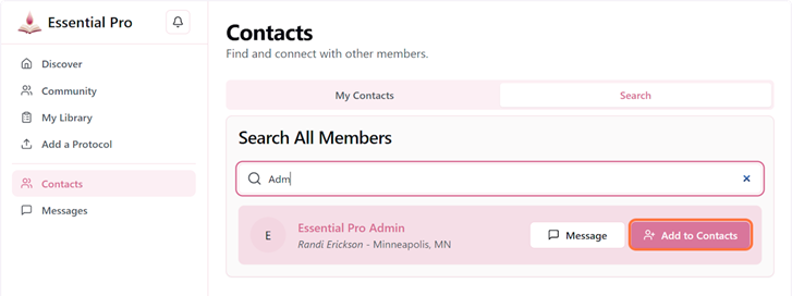 Your Contacts list is your personal wellness network—a curated collection of coaches, practitioners, and fellow wellness enthusiasts you want to stay connected with. Adding contacts makes it easy to message them, follow their protocols, and build lasting professional relationships.