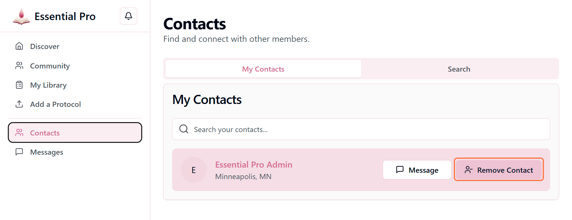 Your Contacts list is your curated wellness network—keeping it current and relevant ensures it remains a valuable professional resource. Removing contacts you no longer need helps you focus on active, meaningful connections without cluttering your network.