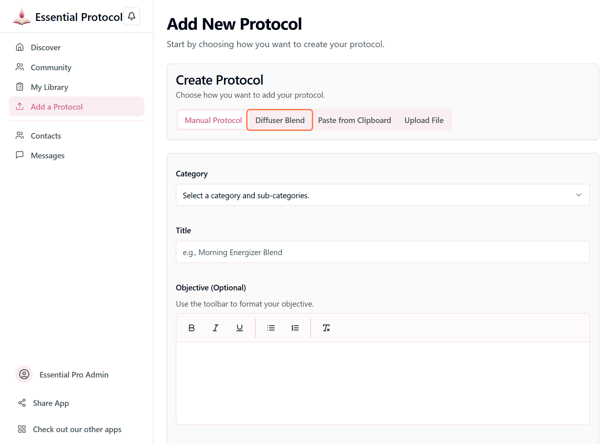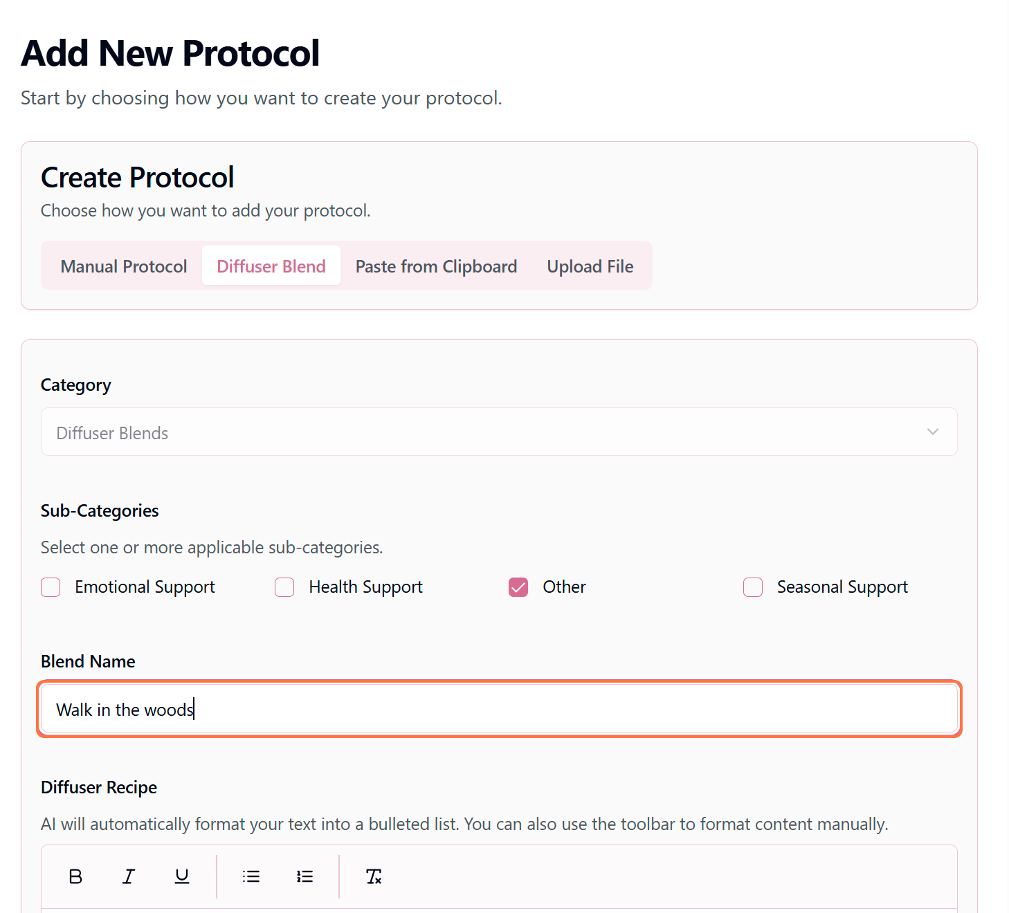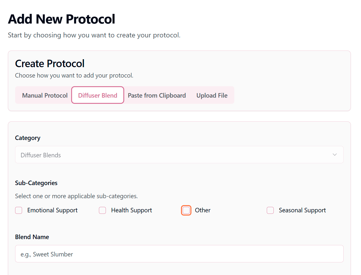 - 2Select "Diffuser Blend Protocol" from the creation options